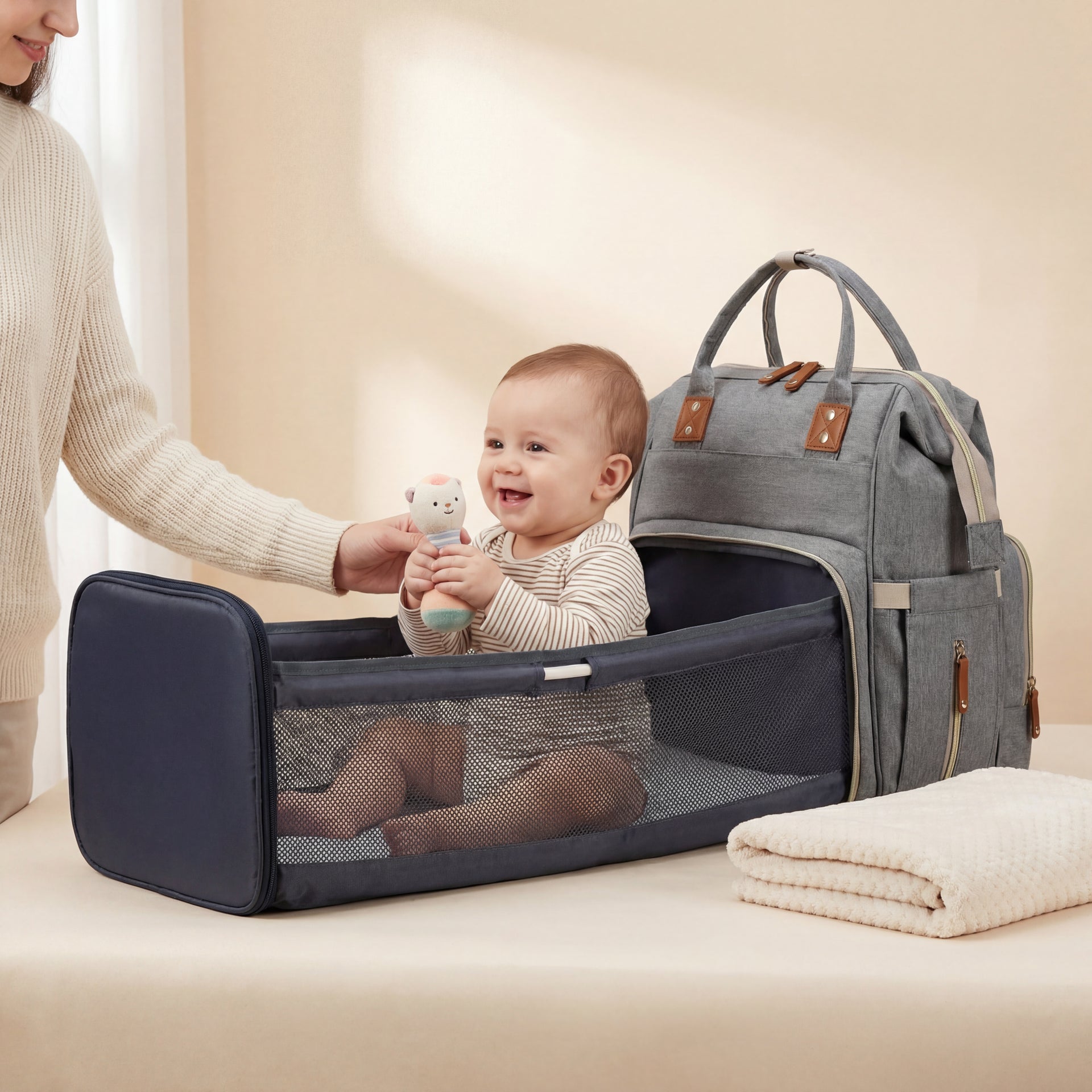 Unlike generic bags, our sleeping station features a reinforced, orthopedic-grade base and 360° breathable mesh. It's not just a bag; it's a portable sanctuary that ensures your newborn has a familiar, hygienic, and safe environment even in busy social settings.